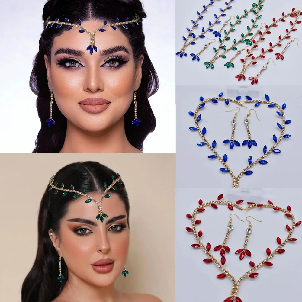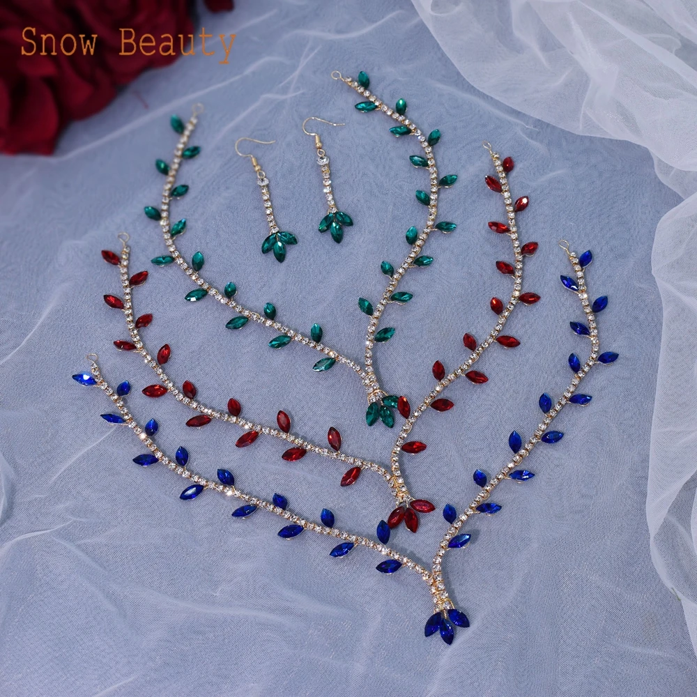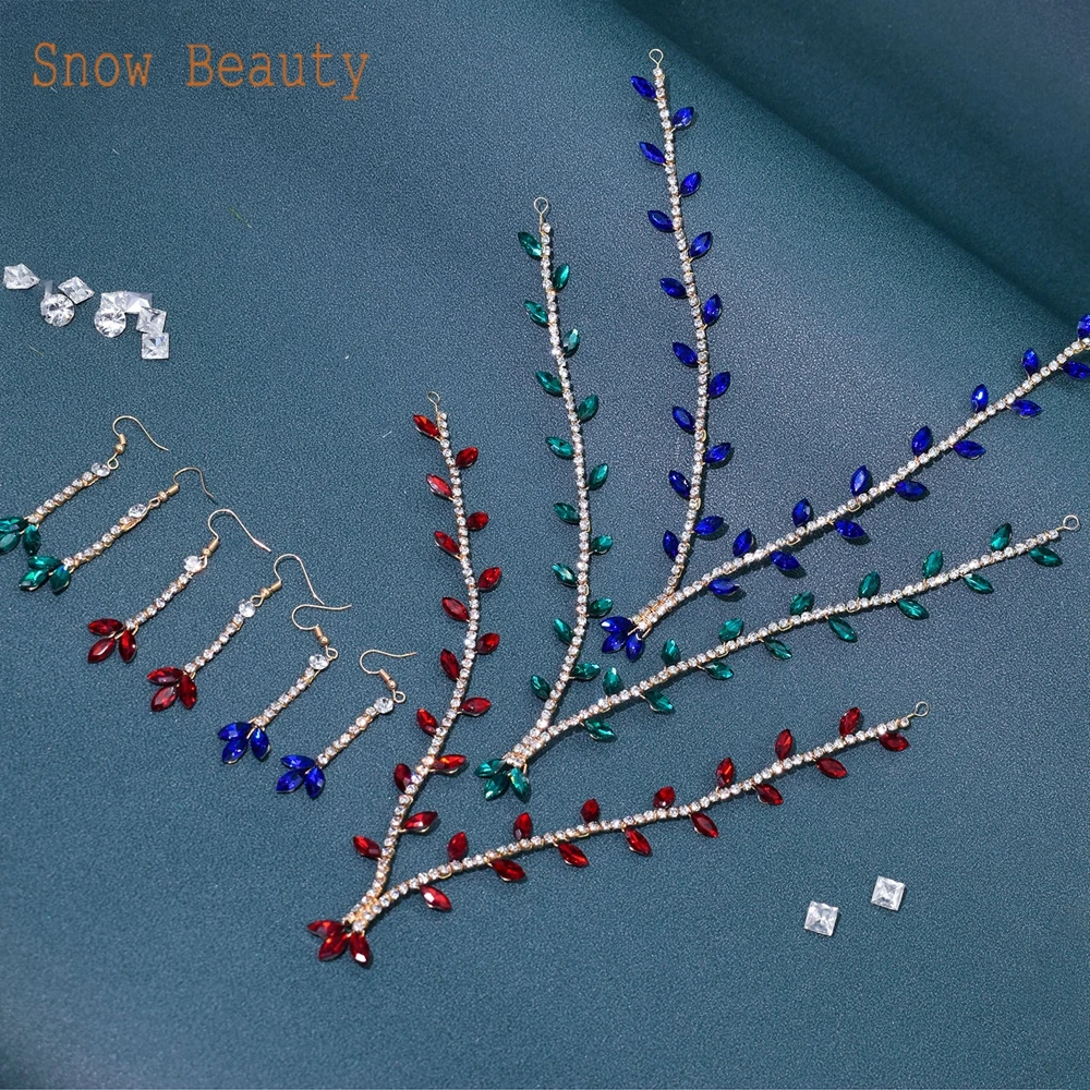 DZ053 Fashion Crystal Bridal Jewelry Sets Colorful Wedding Jewelry Sets Earrings Rhinestone Crown Tiara for Women Headwear