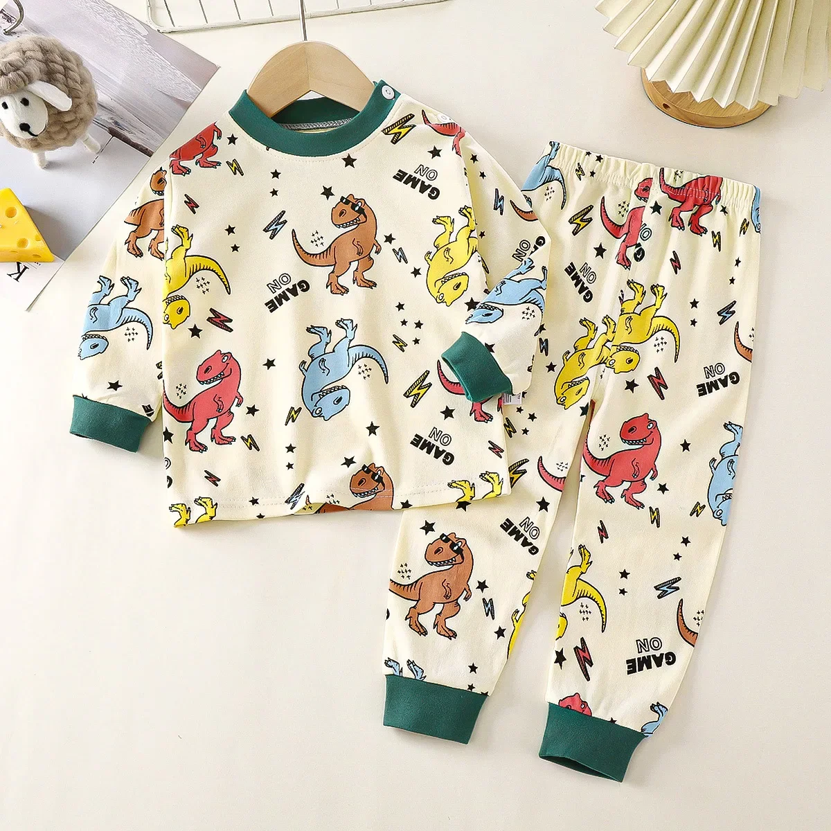 New Boys Girls Autumn Warm Pure Cotton Pajamas Kids Cute Cartoon Dinosaur Long Sleeve Pyjamas Baby Sleepwear Clothing Sets